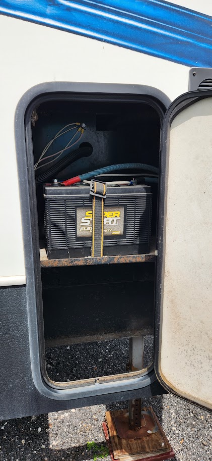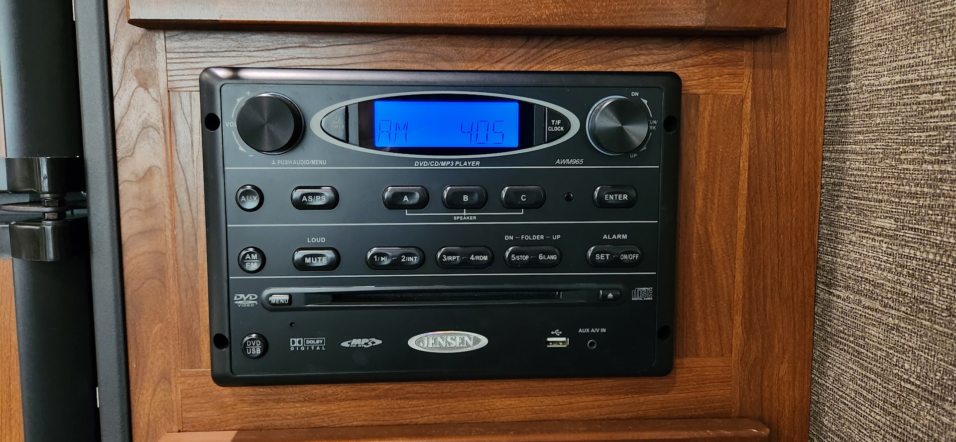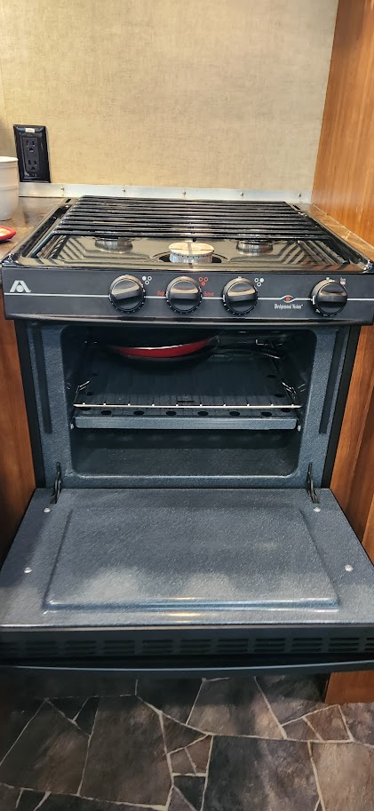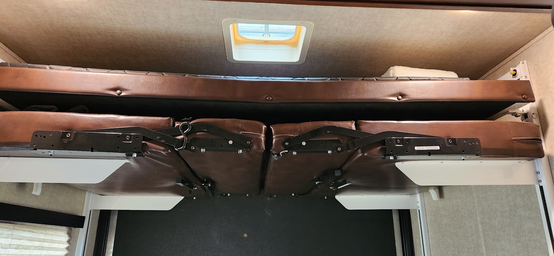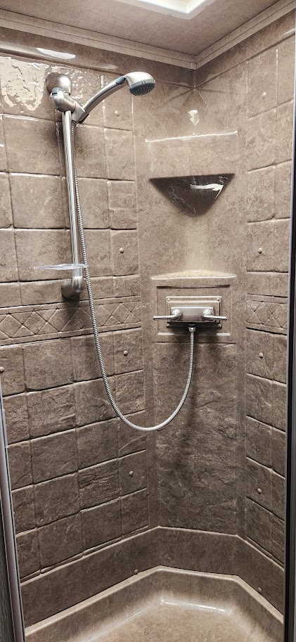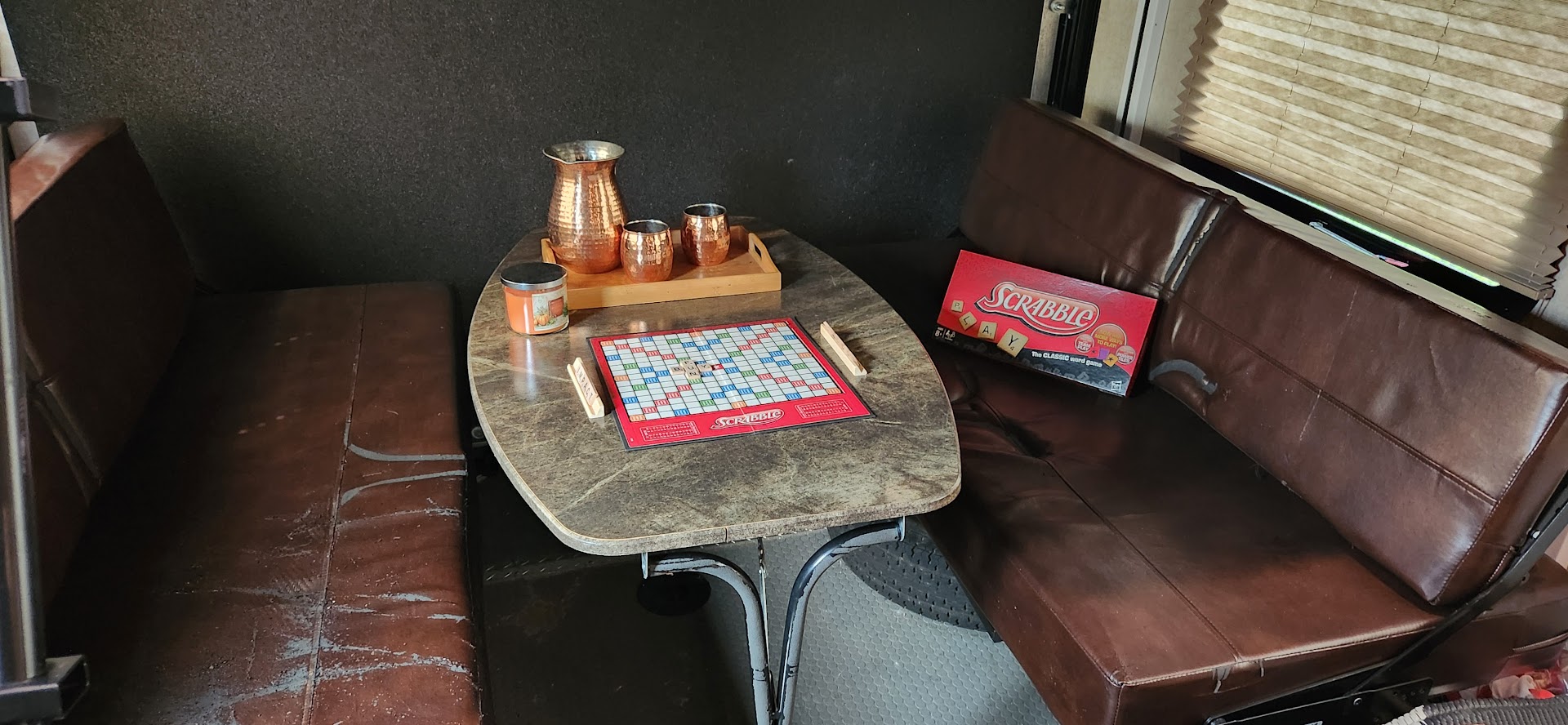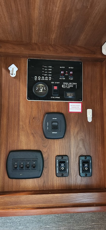 Ready to see some foliage or enjoy the cooler weather? Take this 2014 Keystone Impact anywhere you’d like to go and you’ll have everything you need. A 5th wheel with a toy hauler allows you to bring along your family and friends AND your toys, too! The homey interior will feel comfortable and cozy – when you enter, you’ll be greeted by the spacious kitchen with plenty of storage. The double well sink, oven, gas stove with three burners, large fridge, and microwave provide all the necessities of your kitchen at home. Pop over to the living area, prop your feet up on the comfy recliners, and flip on the large flatscreen TV for untimate relaxation. There is a bathroom that is accessable from both the living area and the spacious bedroom – featuring a king-size bed, overhead storage, nighstand, TV, and mirrored 3-door wardrobe with built-in dresser. Move toward the back, and there is a glass slider door leading to the toy-hauler area which houses a raised bed that can be converted into seating with optional table, and a third television. There’s plenty of room for your toys, and this camper features onboard fueling station for whatever toys you haul! Generator currently has 57.5 hours. Don’t miss out – all of this fun is waiting for you at RV Glamping today!